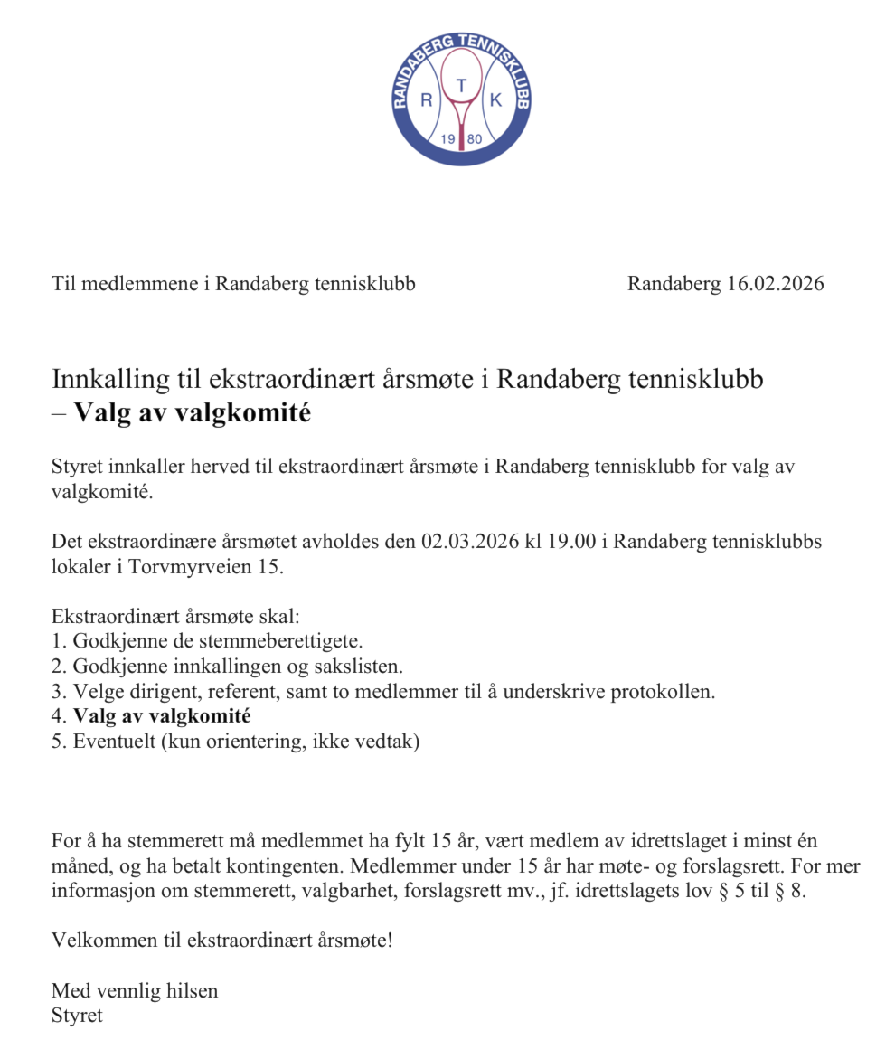 Ekstraordinært Årsmøte 02 mars kl 19